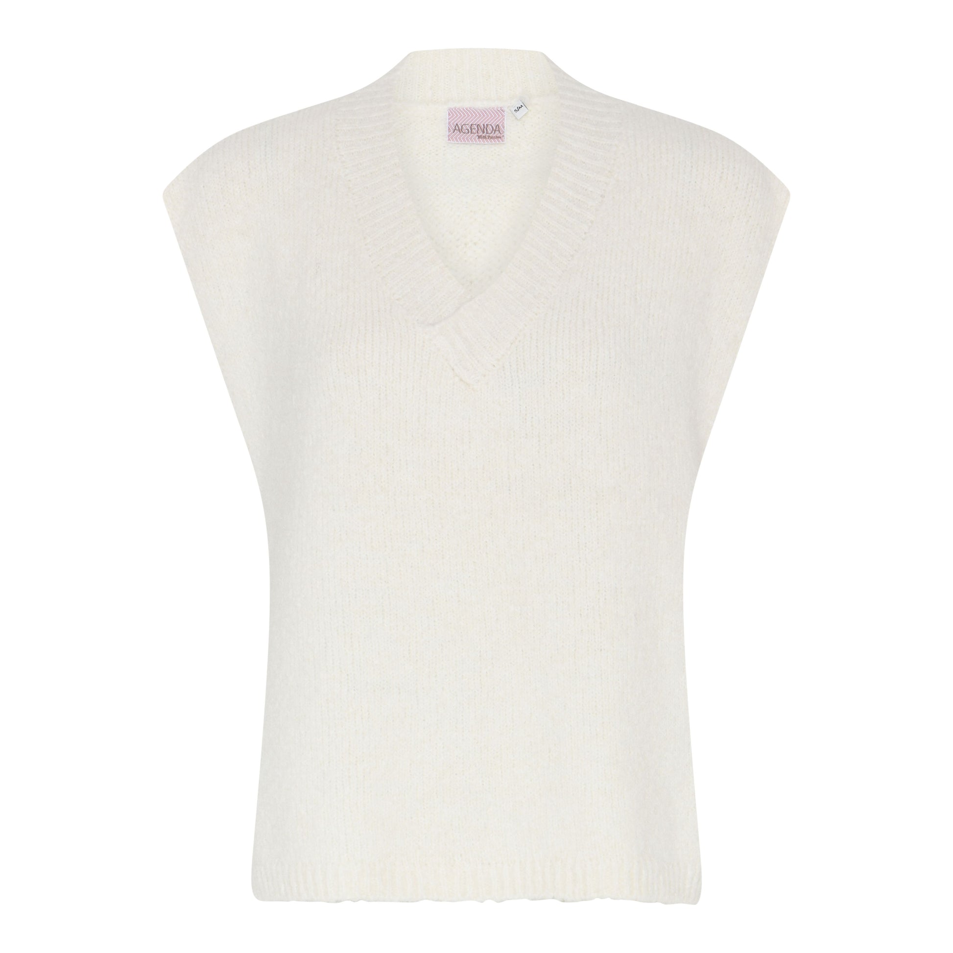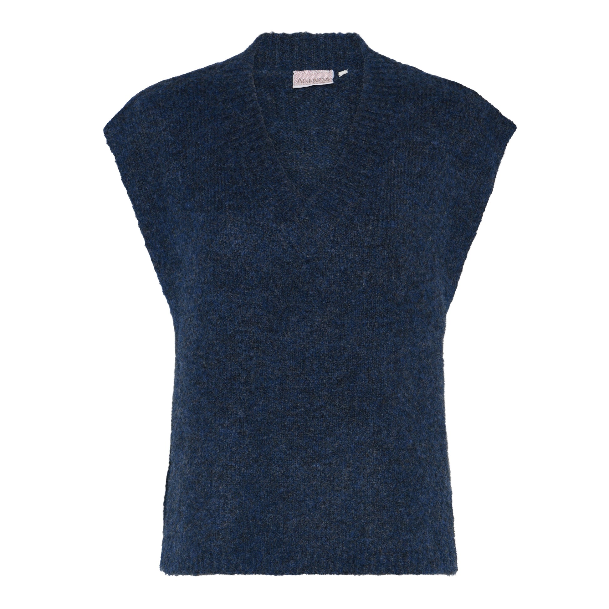 A knitted vest with v-neck and string details.