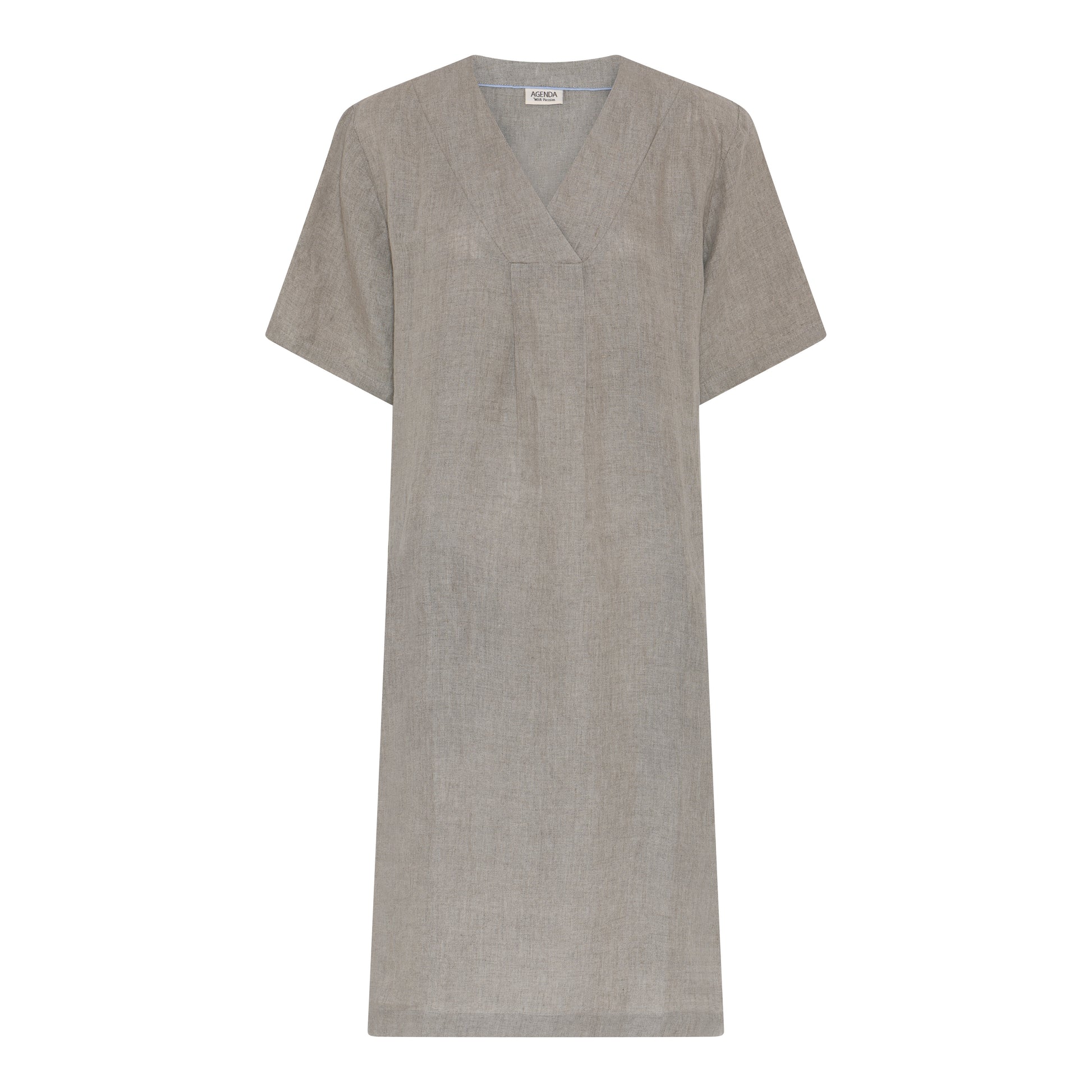 A linen dress with short sleeves.